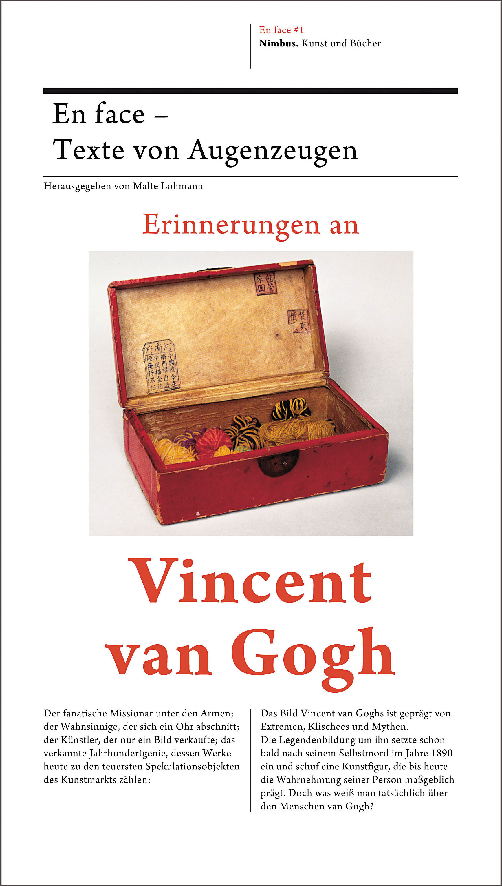 «Eine das van Gogh-Bild revolutionierende Neuerscheinung. Dokumente und Berichte all jener Zeitzeugen, die Vincent van Gogh noch persönlich kennengelernt haben. Aus der Legende vom manischen Genie wird wieder ein klug reflektierender Künstler, der genau wußte, was er wollte.»