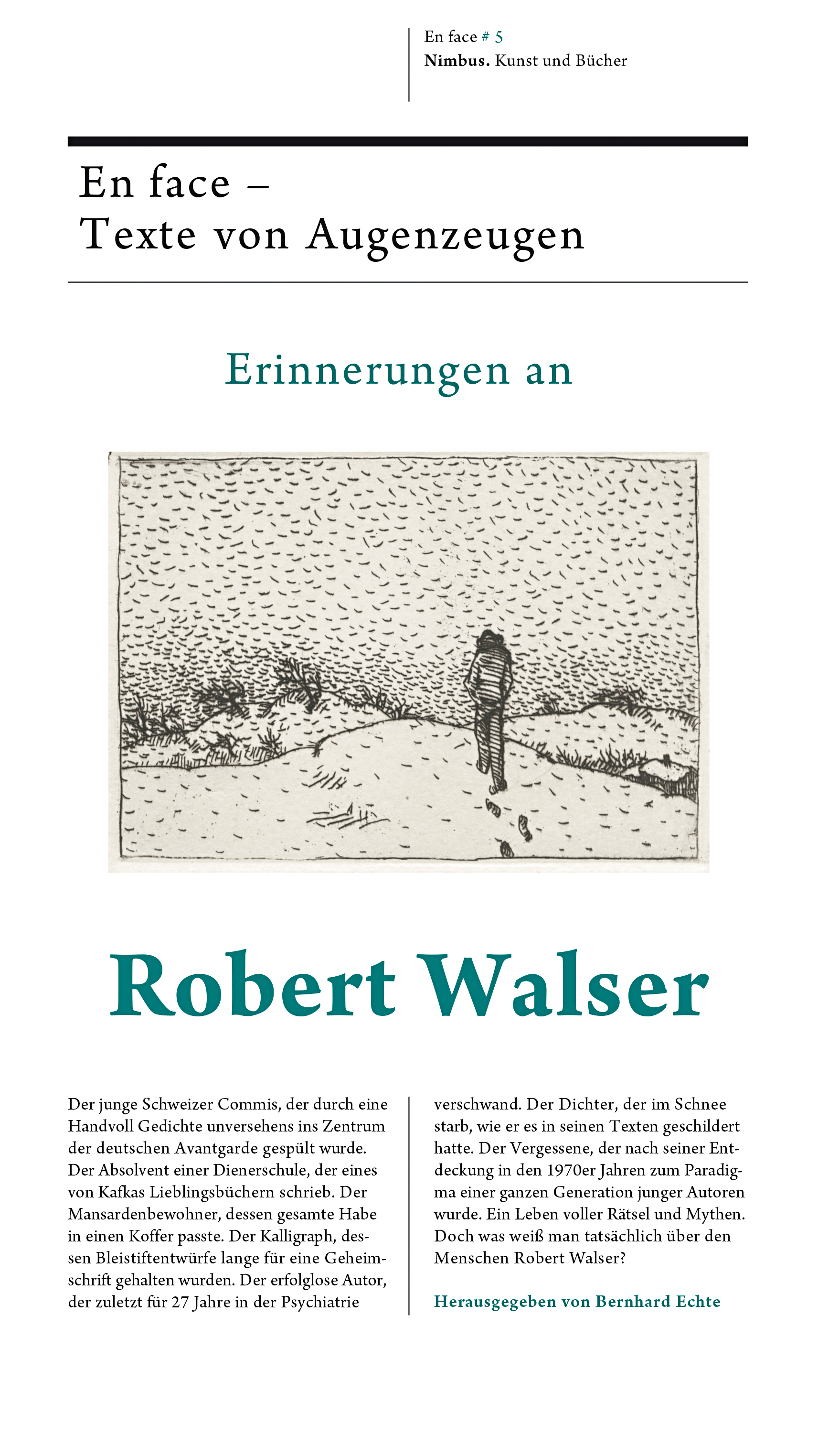 Der junge Schweizer Commis, der durch eine Hand voll Gedichte unversehens ins Zentrum der deutschen Avantgarde gespült wurde. Der Absolvent einer Diener Schule, der eines von Kafkas Lieblingsbüchern schrieb. Der Mansardenbewohner, dessen gesamte Habe in einen Koffer paßte. Der Kalligraph, dessen Bleistiftentwürfe lange für eine Geheimschrift gehalten wurden. Der erfolglose Autor, der zuletzt für 27 Jahre in der Psychiatrie verschwand. Der Dichter, der im Schnee starb, wie er es in seinen Texten geschildert hatte. Der Vergessene, der nach seiner Entdeckung in den 1970er Jahren zum Paradigma einer ganzen Generation junger Autoren wurde. Ein Leben voller Rätsel und Mythen. Doch was weiß man tatsächlich über den Menschen Robert Walser?